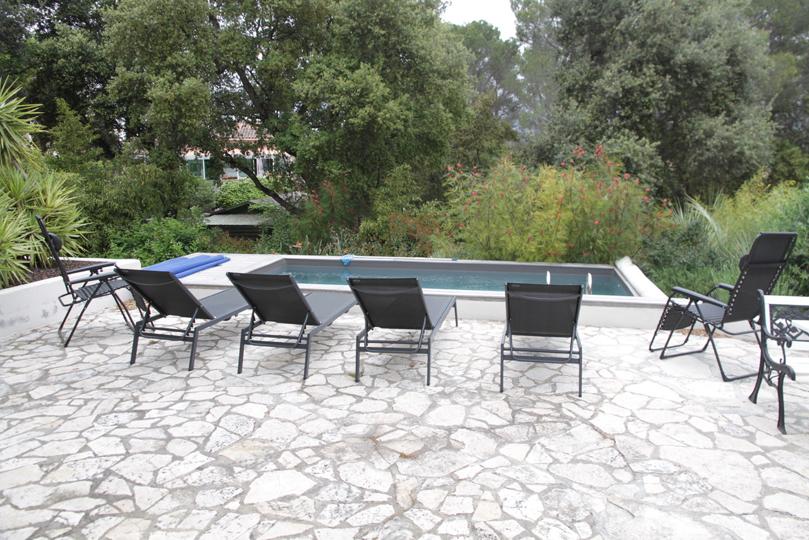 Piscine (6x3) filtrée et catalysée au sel / Chauffage par pompe à chaleur réversible (frais l'été et chaud l'automne) Profondeur : 1,50 m |